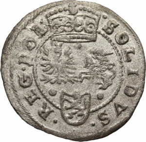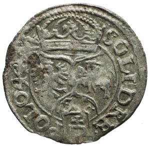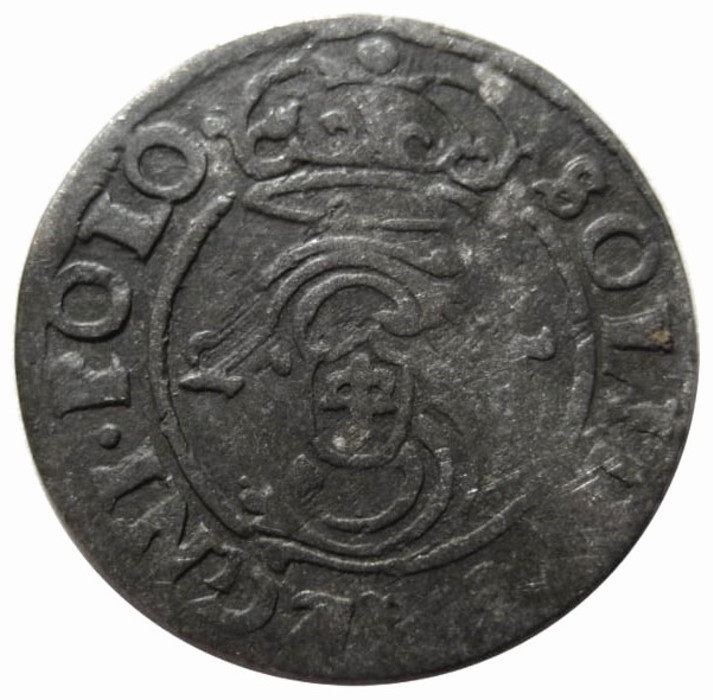 Av.: Pięciopolowa tarcza polsko-litewska ze Snopkiem Wazów w tarczy sercowej. Napis w otoku: SIGIS III D G REX POLONIAE. Dwie ostatnie litery pisane ligaturą. U góry w otoku krzyż. Rv.: Ukoronowany monogram królewski „S”, na nim Snopek Wazów. Napis w otoku: SOLIDVS REGNI POLO. Moneta bilonowa; średnica 16,5-17 mm; waga 0,64 g; mennica Bydgoszcz. Moneta nieopisana w literaturze