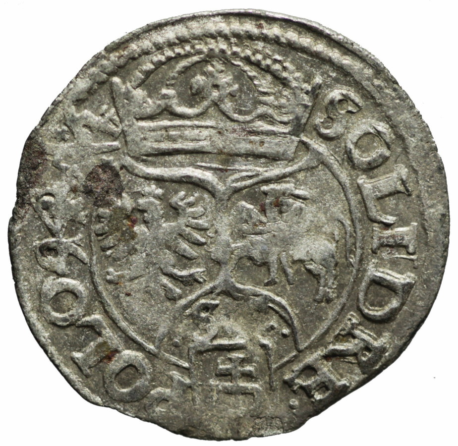 Av.: Orzeł Biały z herbem Snopek na piersi. Napis w otoku: SIG III D G REX POLONI(E). Rv.: Ukoronowany monogram królewski „S”, na nim Snopek, herb Wazów. Po bokach końcówka daty 6 – 14. Napis w otoku: SOLIDVS REGNI POLO. Moneta bilonowa; mennica Bydgoszcz. Kop. 2007 – 170, R4; Gum. B. 304