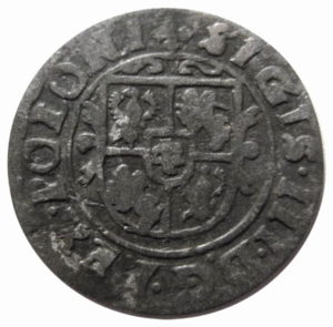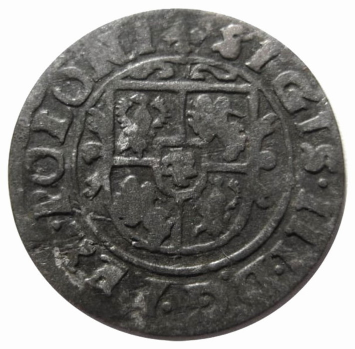 Av.: Pięciopolowa tarcza polsko-litewska ze Snopkiem Wazów w tarczy sercowej. Napis w otoku: SIGIS III D G REX POLONE (?). U góry w otoku krzyż. Rv.: Monogram królewski „S”, na nim Snopek. Po bokach końcówka daty Z – 6. U góry korona (typ 1). Napis w otoku: SOLID(?)S REGNI POLO.