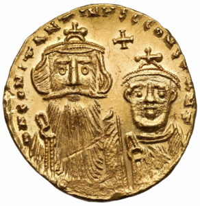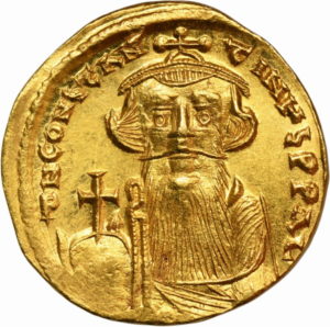 W latach 695-705 na tronie cesarskim zasiadało dwóch władców nie należących do dynastii heraklijskiej. Byli to Leoncjusz II oraz Tyberiusz III Apsimarus. Złote emisje z okresu ich panowania zostaną omówione w oddzielnym wpisie.