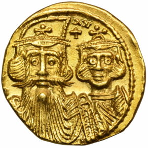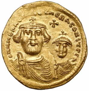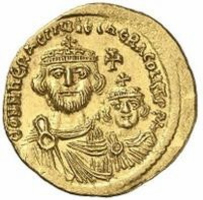 Rok 641 był czasem wyjątkowego zamętu politycznego w Cesarstwie Bizantyńskim. Po długim panowaniu cesarza Herakliusza, który zmarł 11 lutego, władzę objął jego starszy syn – Herakliusz Konstantyn. Na złotych solidach zachowano jednak dotychczasowy schemat przedstawiający trzech cesarzy. Wynikało to z faktu, że oprócz Herakliusza Konstantyna i jego przyrodniego brata Herakleonasa, do władzy został dopuszczony również ich młodszy brat – Dawid Tyberiusz.