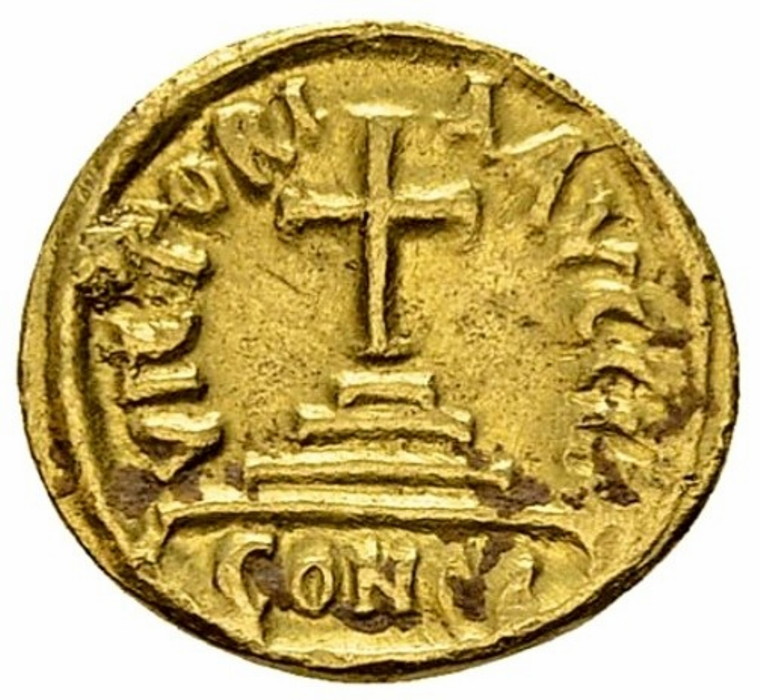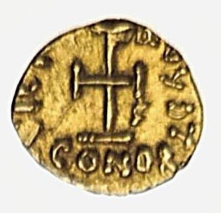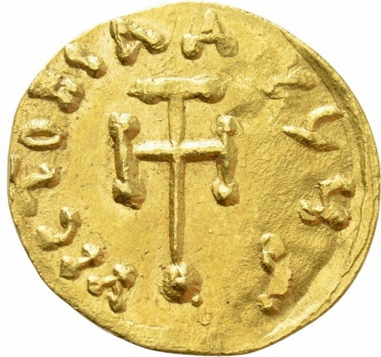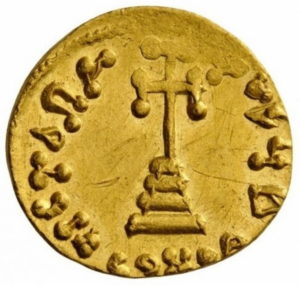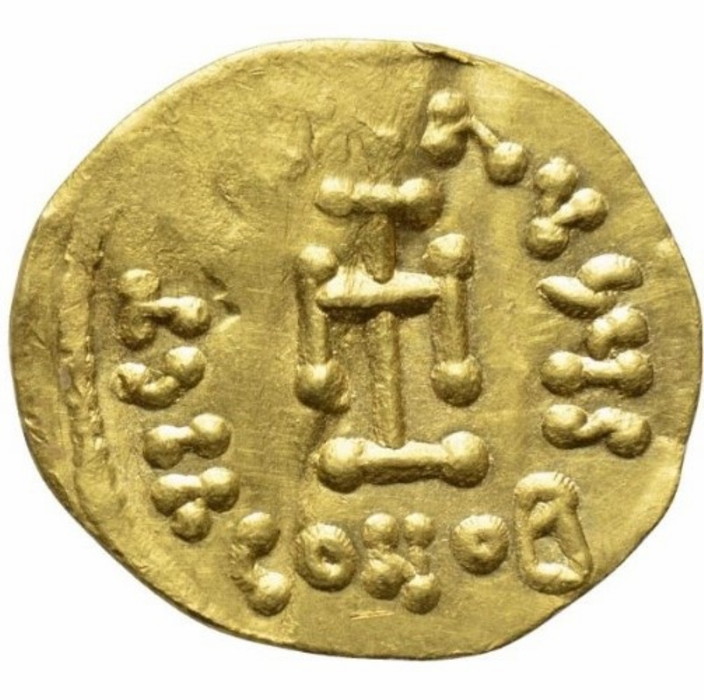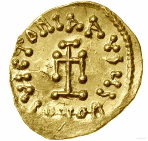Tremis Justynian II, Konstantynopol lub Syrakuzy (profil cesarza/ krzyż), fot. coins.labarum.info