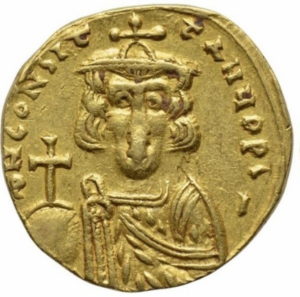 Z najwcześniejszego okresu (641-654) pochodzą również solidy lekkie o wadze 23 silikw bite w Konstantynopolu. Od solidów o normalnej wadze 24 silikw odróżnia je gwiazda w prawym polu rewersu lub napis w odcinku na rewersie BOΓK albo BOXX.