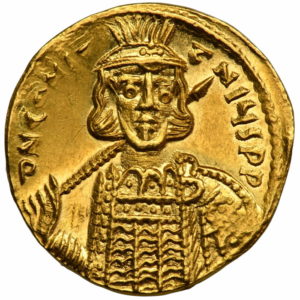 Konstans II objął władzę w 641 roku jako małoletni cesarz po śmierci swojego ojca, Herakliusza Konstantyna. Początkowo dzielił ją z Herakleonasem, swoim stryjem, który jednak został szybko odsunięty od władzy przez wojsko i arystokrację. Tym samym w wieku 11 lat Konstans II został jedynym cesarzem. Jego panowanie przypadło na trudny czas dla Bizancjum, szczególnie ze względu na dynamiczną ekspansję Arabów. W 642 roku cesarstwo utraciło Egipt – jeden z najważniejszych regionów imperium. Konstans próbował ratować sytuację militarnie i administracyjnie, m.in. reorganizując armię i rozwijając system temów. W 648 roku wydał dekret „Typus”, który zakazywał sporów teologicznych o naturę Chrystusa, co doprowadziło do konfliktu z papieżem. W 655 roku poniósł klęskę w bitwie morskiej pod Finike, dowodząc osobiście flotą. W późniejszych latach przeniósł się do Sycylii, co wywołało niezadowolenie w Konstantynopolu. Zginął w 668 roku w Syrakuzach, zamordowany najprawdopodobniej w wyniku spisku.