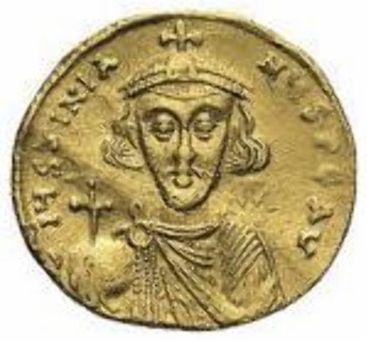 Solid Justynian II, Syrakuzy, fot. coins.labarum.info