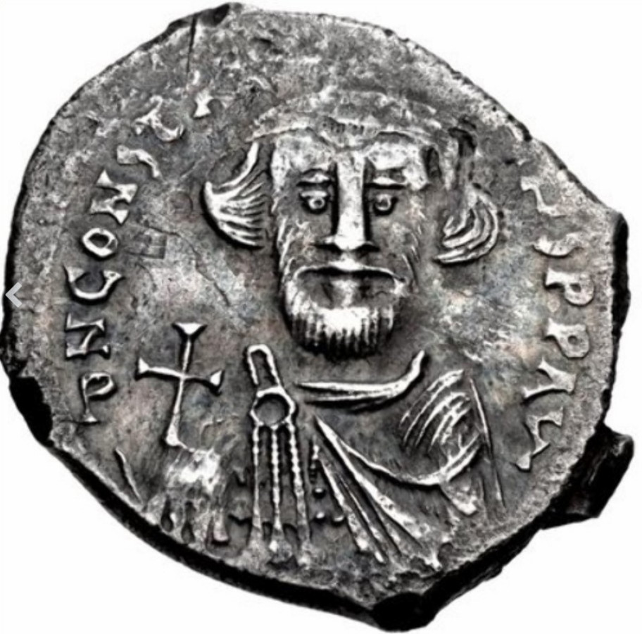 - Na awersie wizerunek Konstansa II bez brody w koronie z krzyżem, imię władcy w otoku. Na rewersie krzyż.