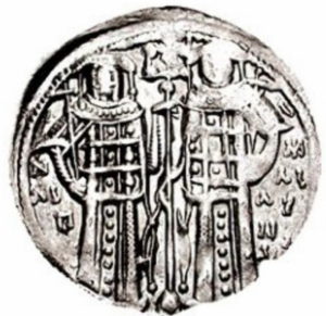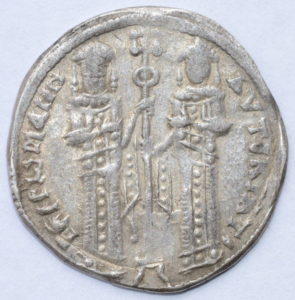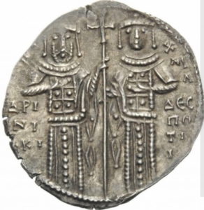 Przed rokiem 1320 wybito ciekawy typ (widoczny poniżej) bez zapisu imienia władców, z anonimową legendą ΑVΤΟΚΡΑΤOPEC PωMAION.
