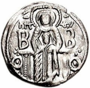 Bizancjum, basilikon Andronik II i Michał IX 1295-1320, Konstantynopol (typ z Matką Boską na awersie), fot. coins.labarum.info