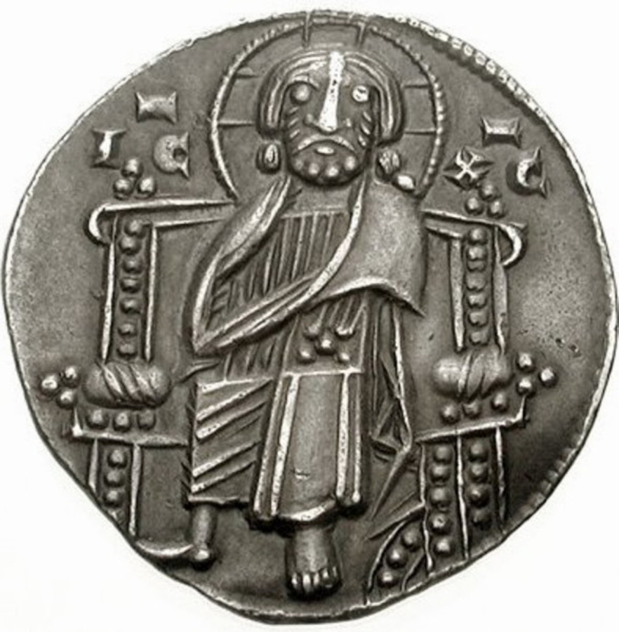 Pierwsze egzemplarze wyemitowano w latach 1295-1304. Na awersie posiadały wizerunek Chrystusa na tronie, na rewersie umieszczono postacie stojących obok siebie władców Andronika II i Michała IX.