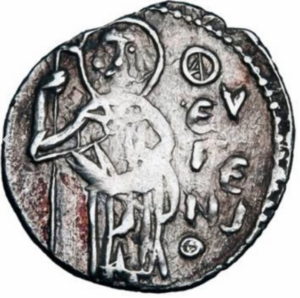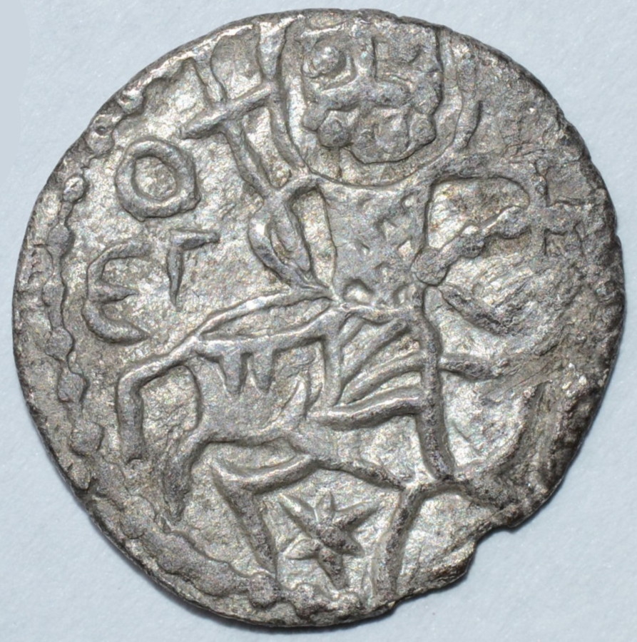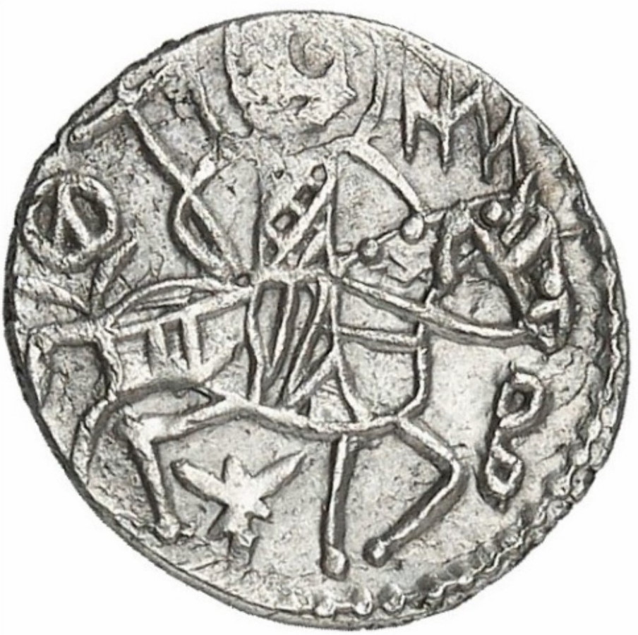 Av.: Święty Eugeniusz z nimbem wokół głowy, jadący na koniu w prawo i trzymający krzyż w prawej ręce, w polu monety napis, na dole gwiazda