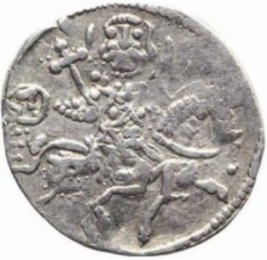 Rv.: Aleksy II w koronie z pendiliami jadący na koniu w prawo i trzymający berło w prawej ręce. W prawym polu u góry słońce. Napis: A – ЄN/ N N
